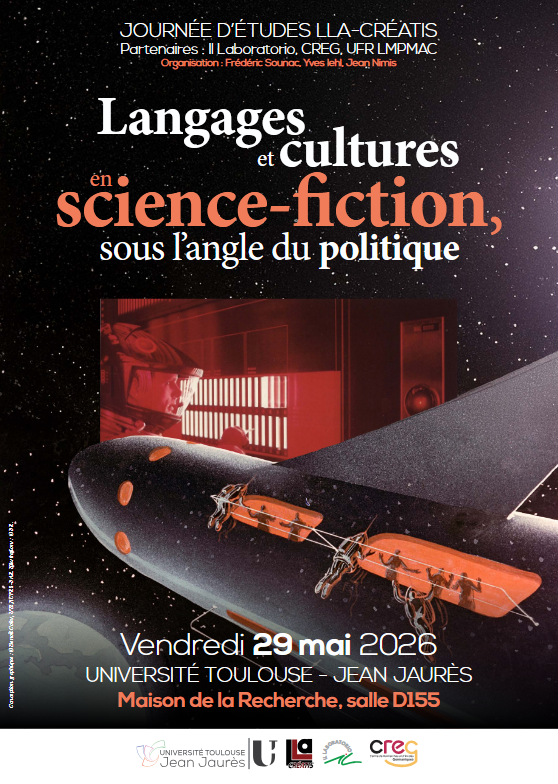 Toujours sur le terrain d’investigation qu’est le politique (une dimension centrale de la « fiction spéculative »), le séminaire se penche maintenant sur les langages en action dans les récits mettant en scène des cultures de sociétés « autres ». Il s’agit de voir comment apparaissent et s’organisent des éléments linguistiques particuliers selon les époques et les œuvres, soit en tant que vecteurs de communication dans les récits, soit en tant qu’éléments stylistiques (avec l’introduction d’éléments de langage spécifiques, scientifique, humoristique, etc.) dans la poétique d’une œuvre ou d’un auteur, d’une autrice.